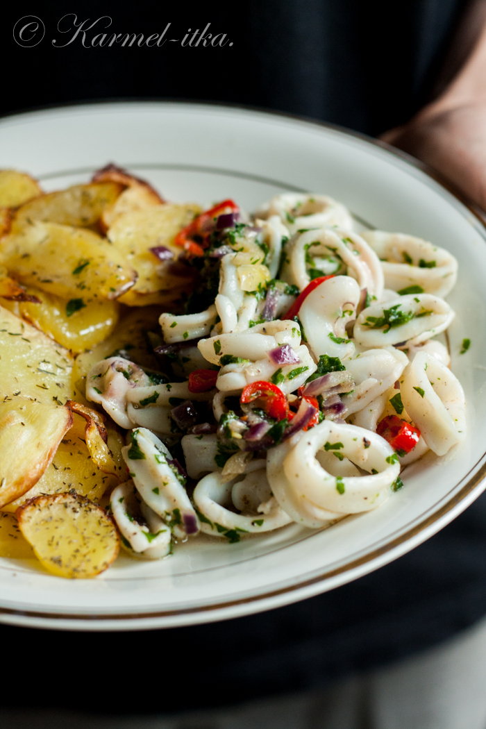 PIKANTNE KALMARY I MŁODE PIECZONE ZIEMNIACZKI