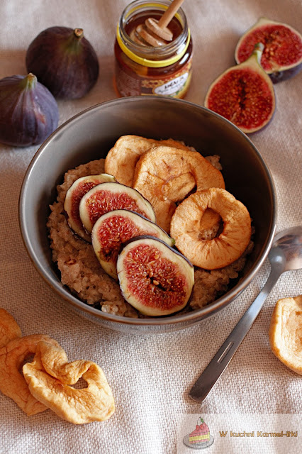 PŁATKI GRYCZANE Z FIGĄ, MIODEM I SUSZONYMI JABŁKIEM
